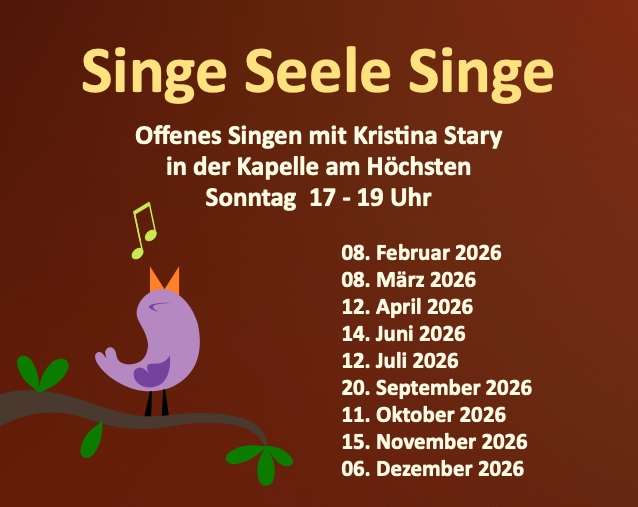 am heutigen Vollmondtag grüße ich Euch herzlich und lade Euch zum nächsten Singtermin in die Kapelle am Höchsten ein - gleich am kommenden Sonntag, 08.03., wie immer von 17-19 Uhr.
